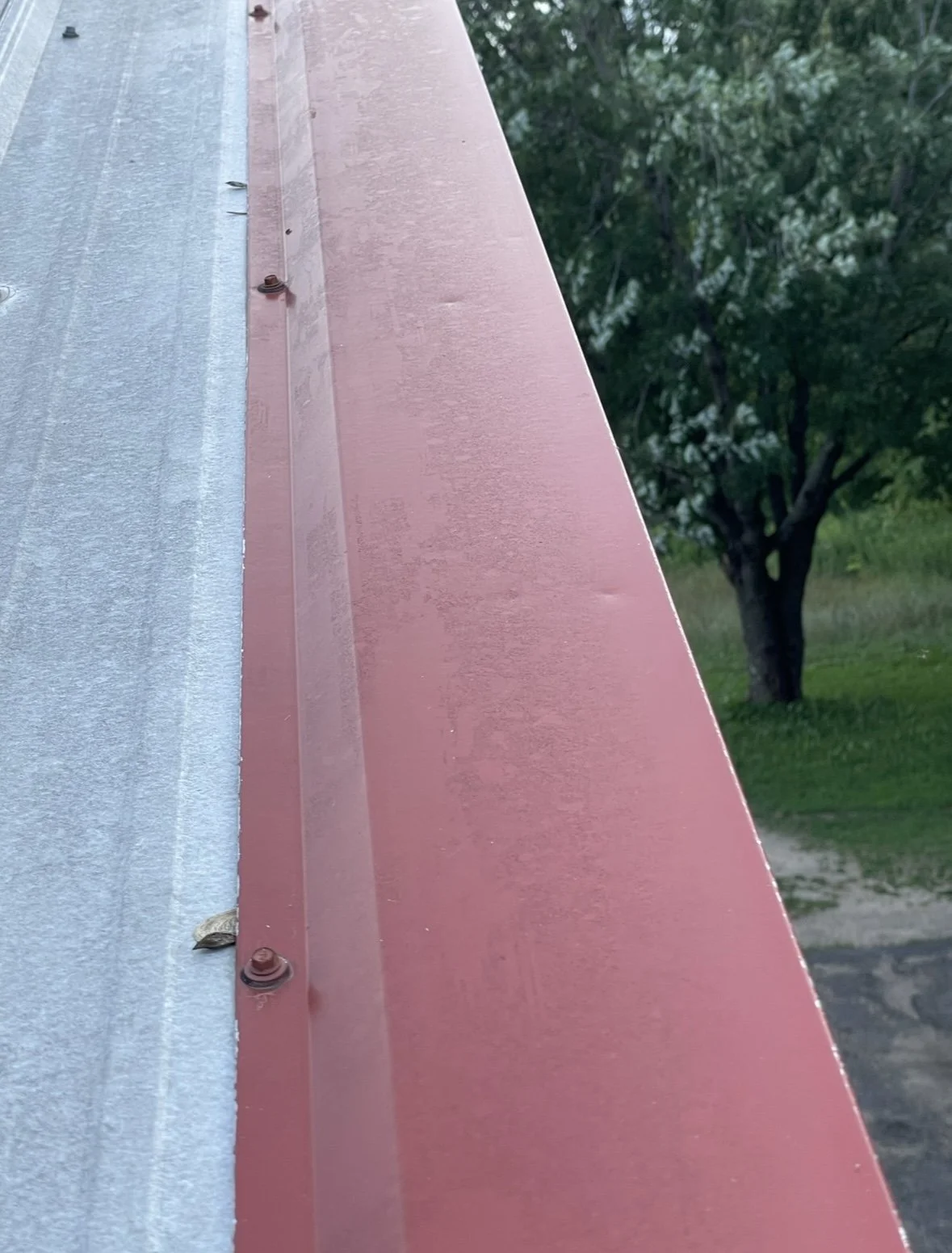 This photo shows hail dents in the steel valley, revealed using a high-powered flashlight to cast shadows where the dents are. Damage like this will help maximize your claim and build a case for the other damage on your property. It is important that this doesn't get overlooked, as it can significantly impact the overall assessment of your property damage.