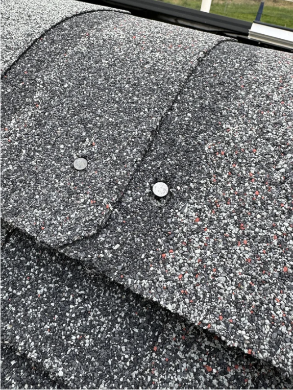 We also check for additional exposed nail heads, commonly found on the ridge and around roof vents. These exposed nails should be caulked to prevent water intrusion and protect your home from potential leaks.
